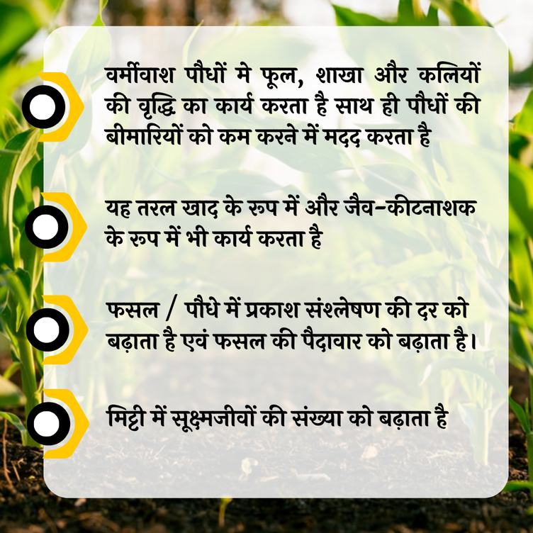 1 litre of Vermiwash in 10 litres of water sprayed on the crop acts as a liquid manure