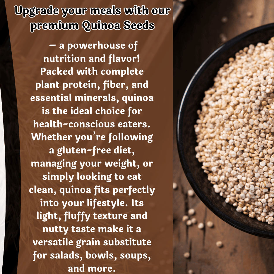 Upgrade your meals with our premium Quinoa Seeds – a powerhouse of nutrition and flavor! Packed with complete plant protein, fiber, and essential minerals, quinoa is the ideal choice for health-conscious eaters.