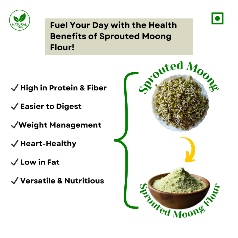 Our unique formulation includes sprouted moong and malted ragi, ensuring enhanced nutrient absorption, improved digestibility, and a boost in natural enzymes. Sprouting unlocks essential amino acids, making this flour even more nourishing for individuals of all age groups, including children, pregnant women, and the elderly.